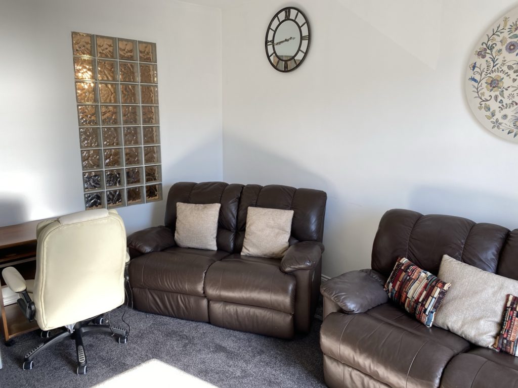 LOUNGE with leather sofas, fully fitted KITCHEN with appliances, BATHROOM with shower over the bath, DOUBLE BEDROOM. Shared garden